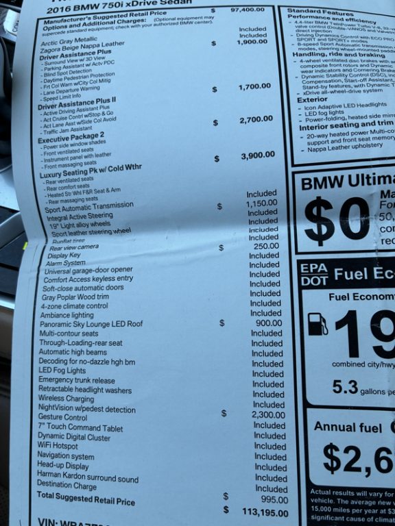 2016 BMW 750 XI